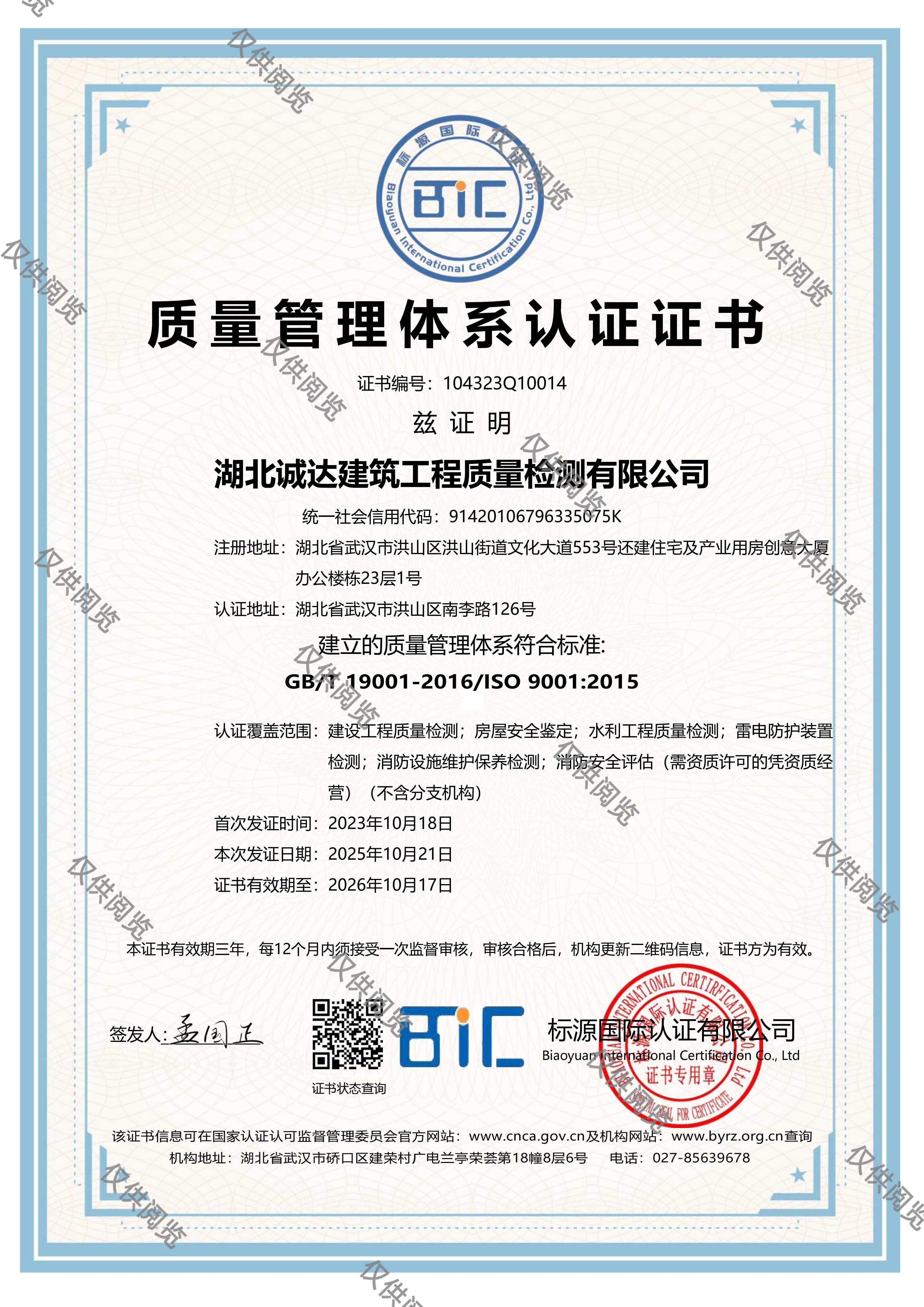 Copyright@ 2014-2024 湖北誠達(dá)建筑工程質(zhì)量檢測有限公司 All rights reserved. 備案號:鄂ICP備18027641號-1